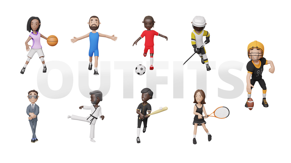 - Outfits (Business, American footballer, Hockey, Soccer, Baseball, Basketball, Wrestler, Karate, Tennis)