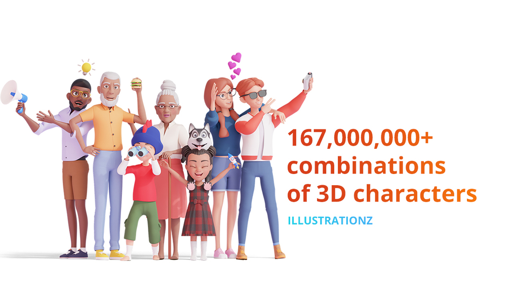 In total, you can combine more than 167 Million 3D characters.