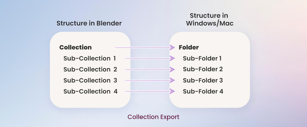 Our Blender addon allows for the simultaneous export of multiple collections or objects, saving you time and effort.