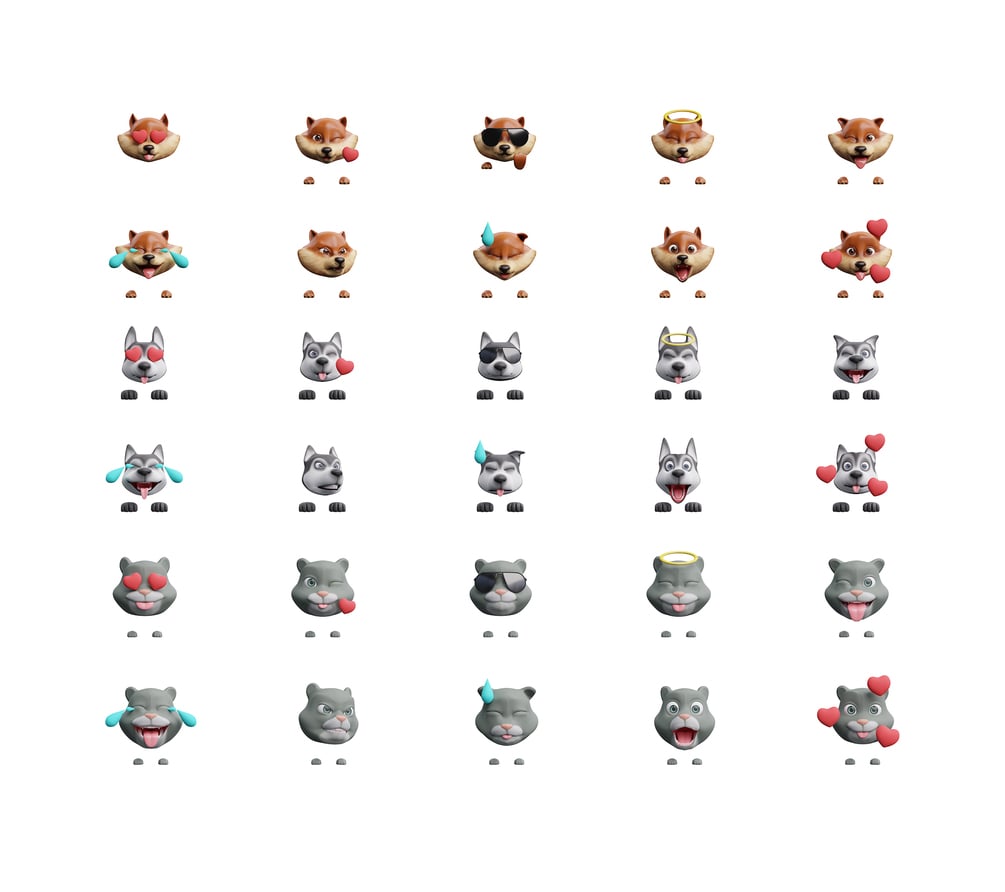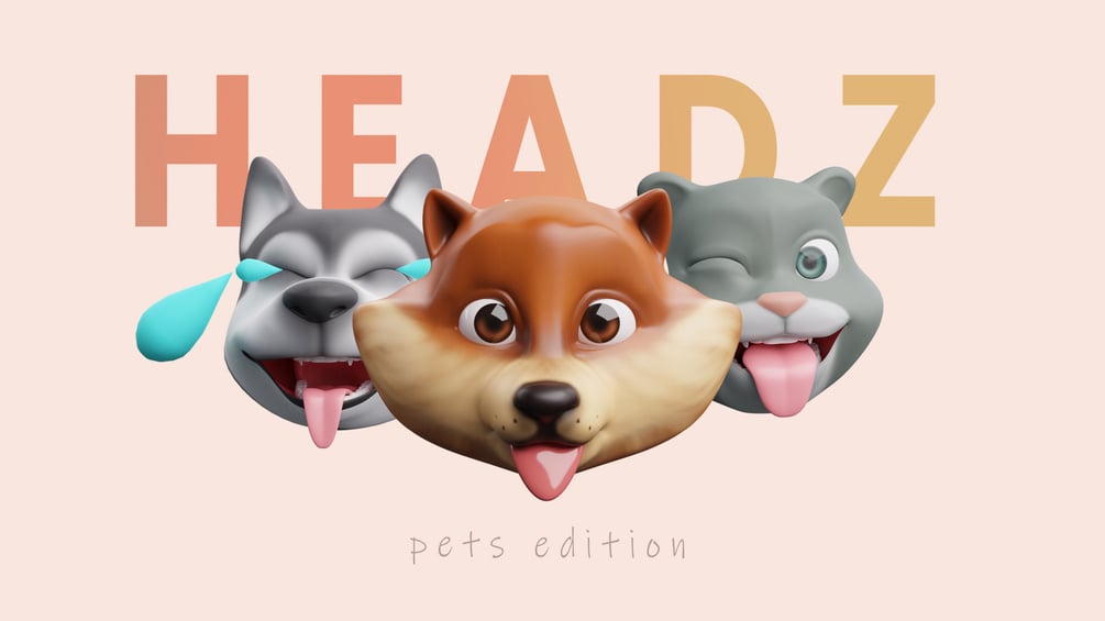 HEADZ "pets edition" is a cute 3D library of heads of pets. You can use them in your products or for marketing purposes (social media posts, landing pages, blogs, newsletters, etc.). Or if you want - for your personal use.