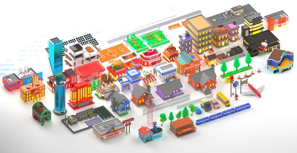 Worldz is a 3D pack of low poly buildings, trees, vehicles, and other world assets, which help you build your custom city.